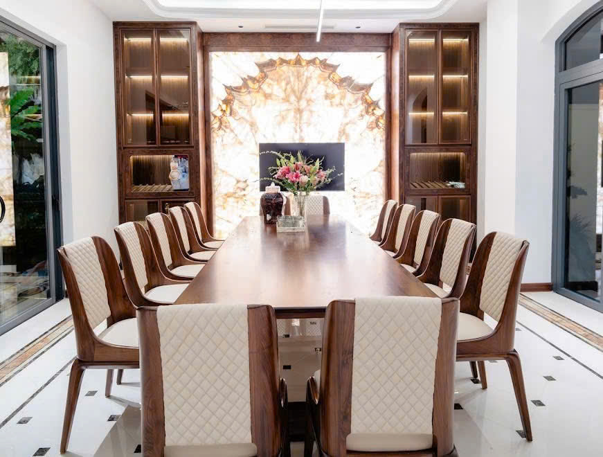Không gian phòng ăn sẽ trở nên tinh tế, ấm cúng và đẳng cấp, là nơi kết nối cảm xúc và khẳng định gu thẩm mỹ tinh tế của gia chủ.