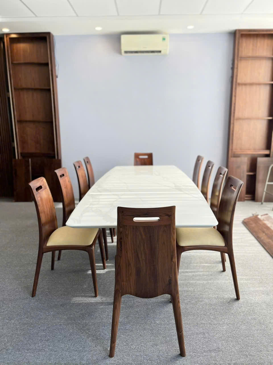 Bộ bàn ăn 8 ghế mặt đá trắng là lựa chọn lý tưởng dành cho những ai yêu thích phong cách hiện đại, tự nhiên và đẳng cấp. Sự kết hợp hoàn hảo giữa chất liệu gỗ óc chó tự nhiên cùng mặt bàn đá trắng vân mây mang đến vẻ đẹp sang trọng, bền bỉ và dễ vệ sinh trong quá trình sử dụng.