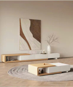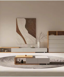 - Tính đồng bộ cao: Sự hài hòa giữa bàn trà và kệ TV về hình khối và chất liệu.