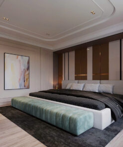 Chiếc giường ngủ này là điểm nhấn trung tâm trong không gian phòng ngủ theo phong cách Hiện Đại – Sang Trọng. Thiết kế tối giản nhưng đậm chất nghệ thuật, mang đến sự thư giãn tuyệt đối, đồng thời thể hiện đẳng cấp của gia chủ.