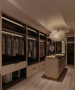 Ánh sáng: Tích hợp đèn LED hắt ẩn phía trên, chiếu sáng khu vực treo đồ và làm nổi bật vật dụng.